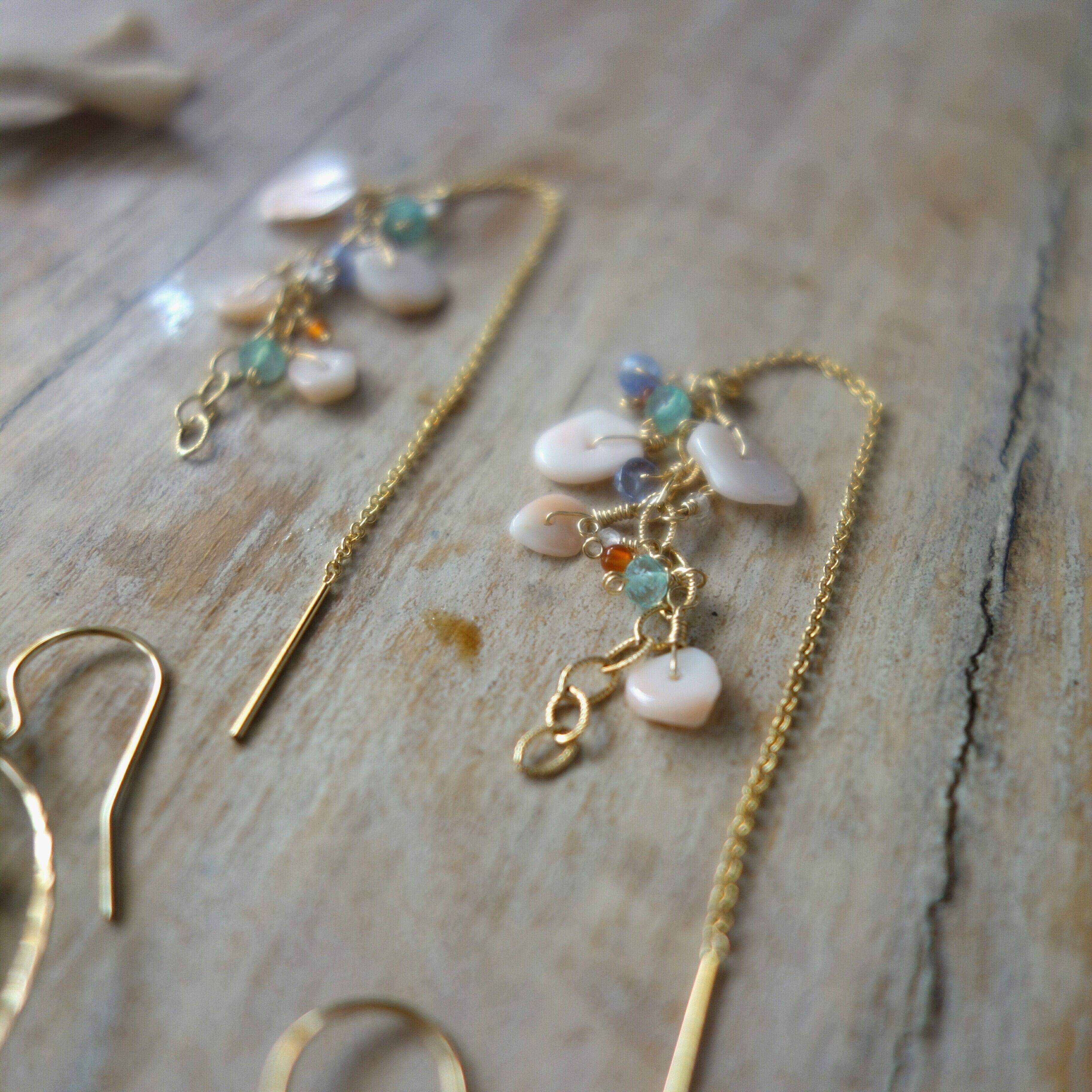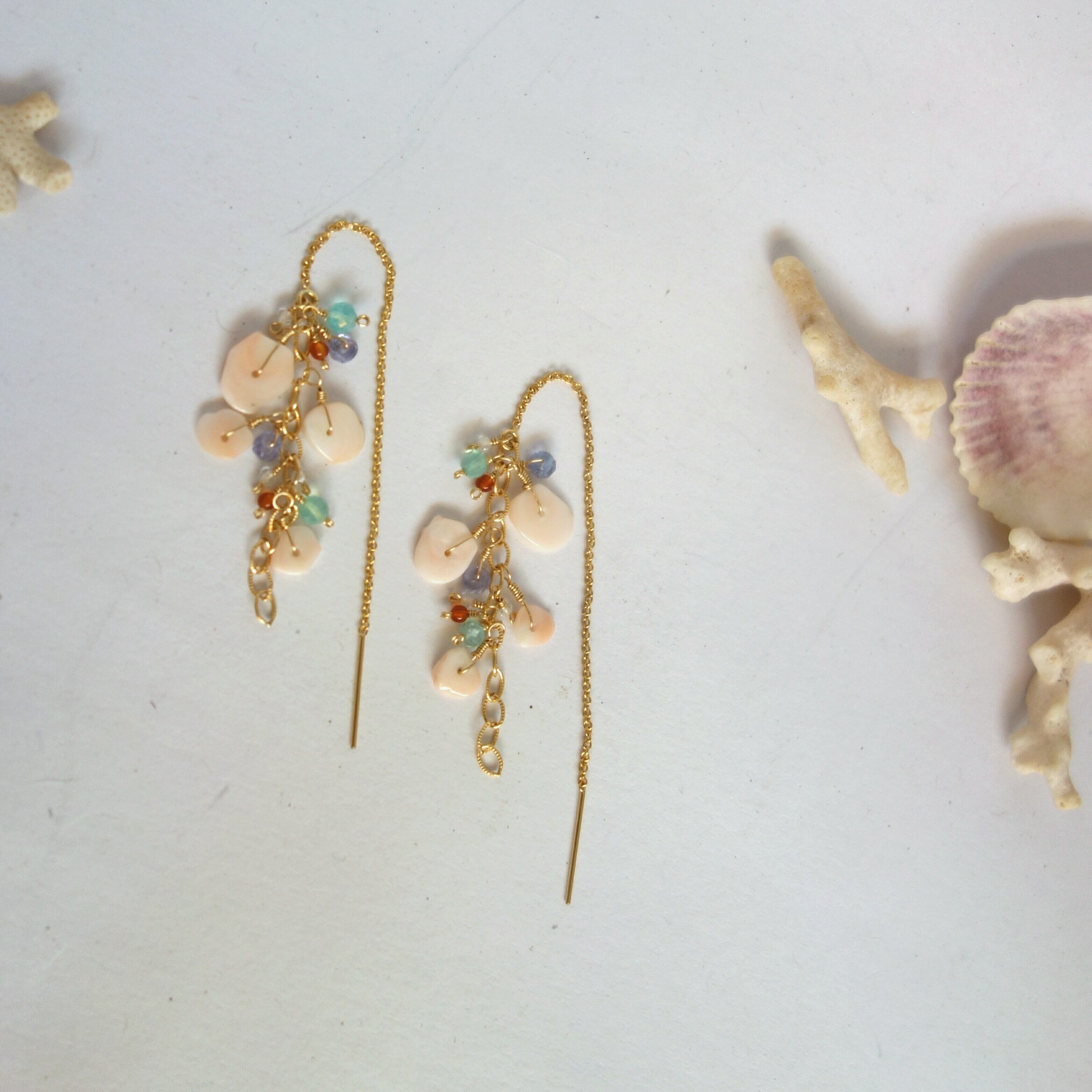 色とりどりの天然石を組み合わせた夏色ピアスです。