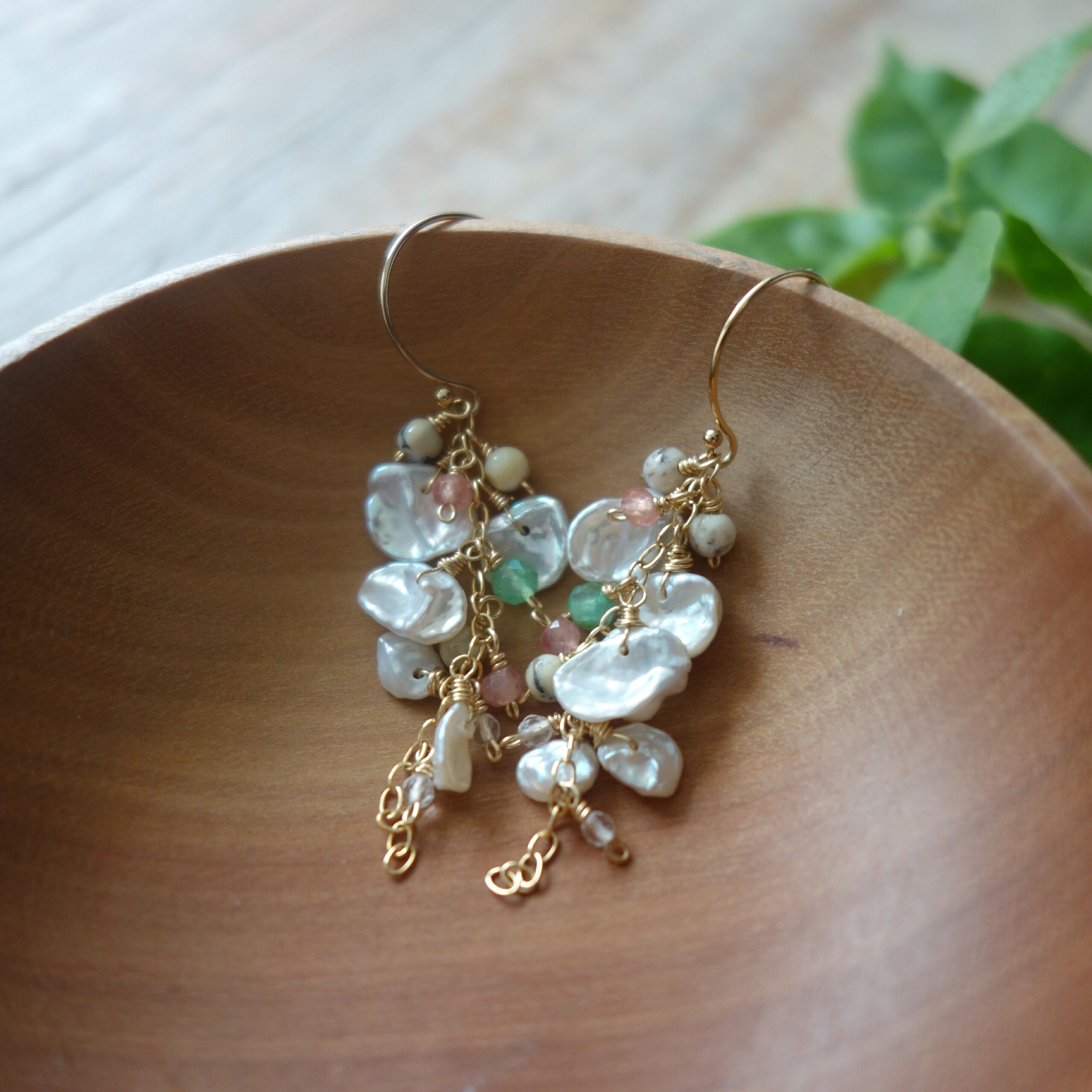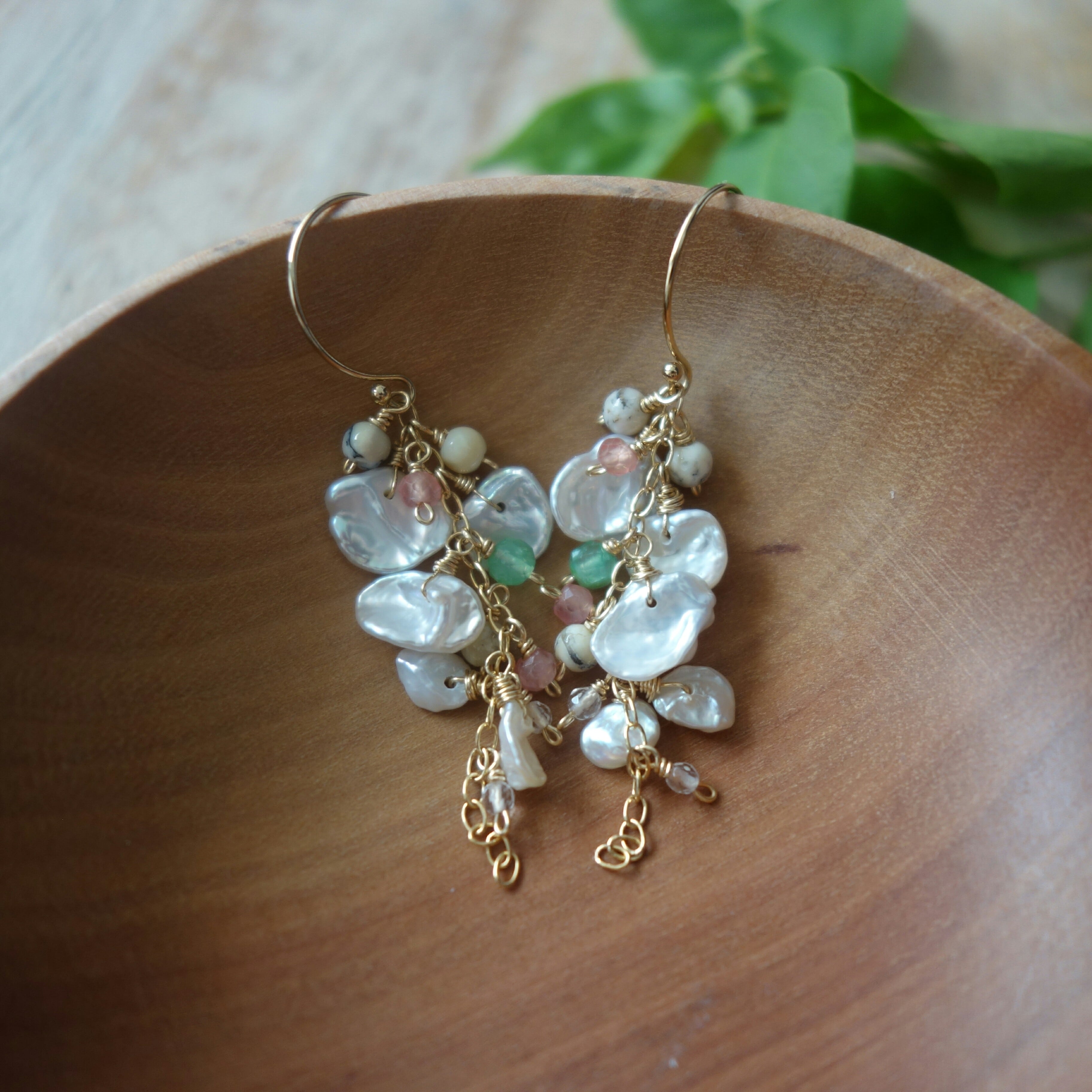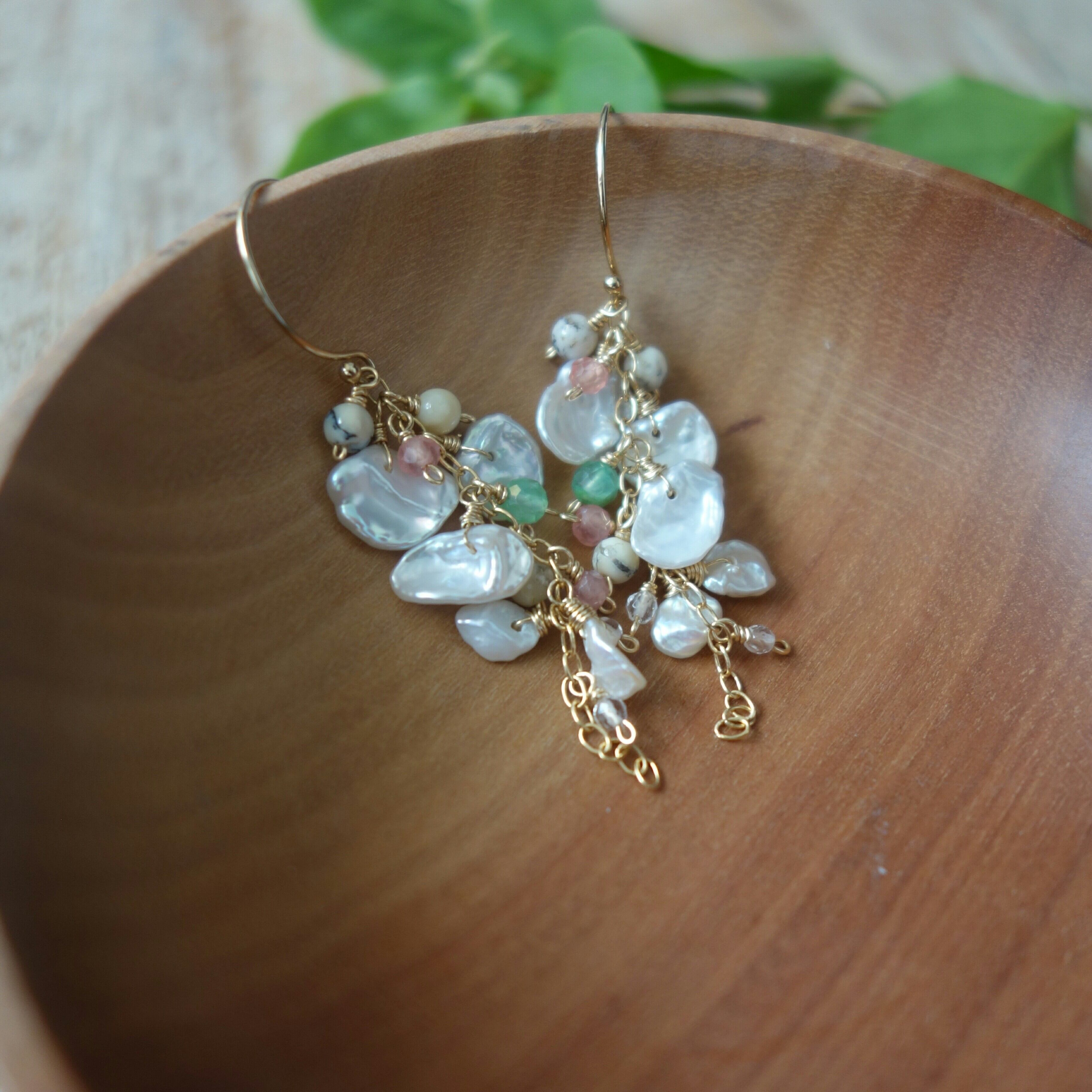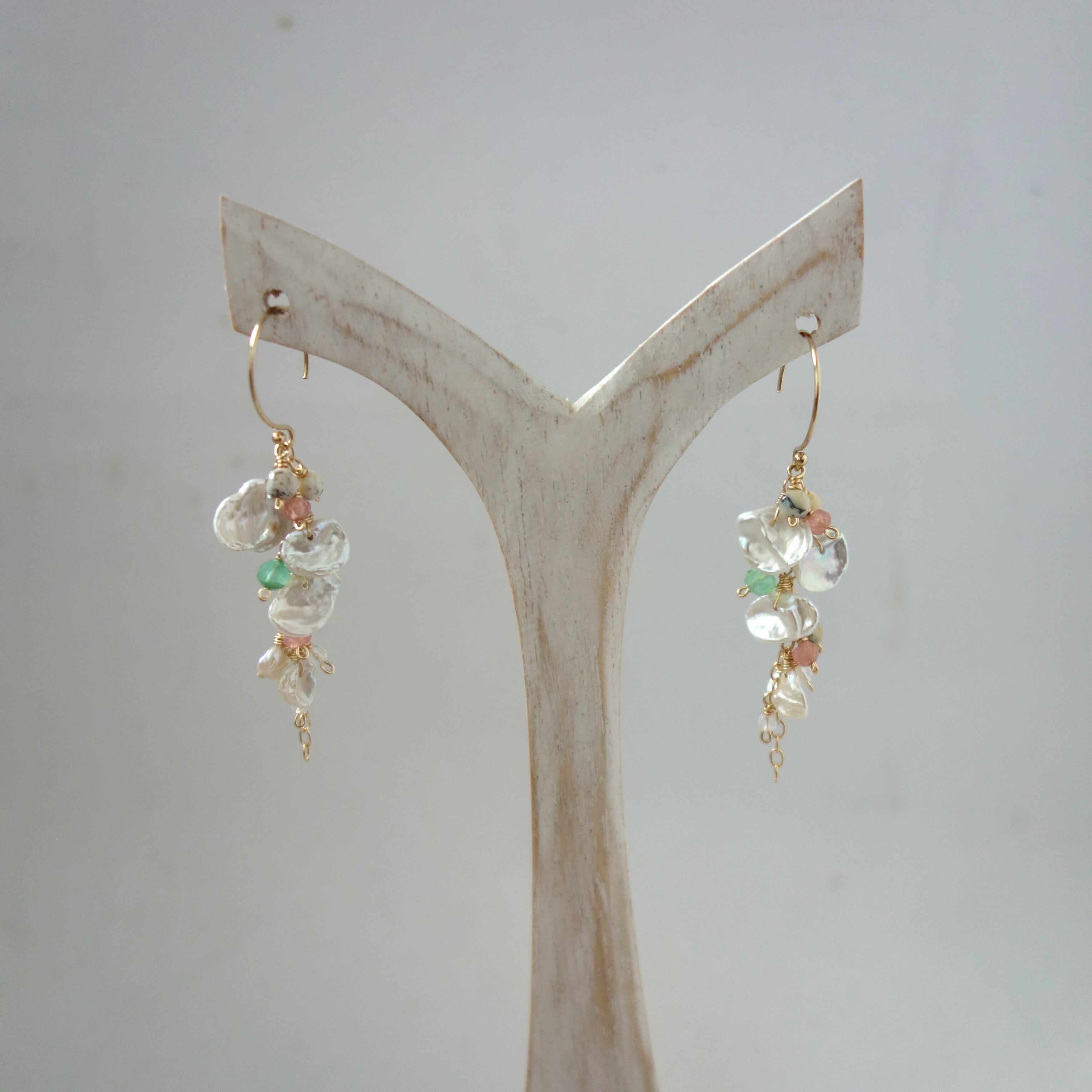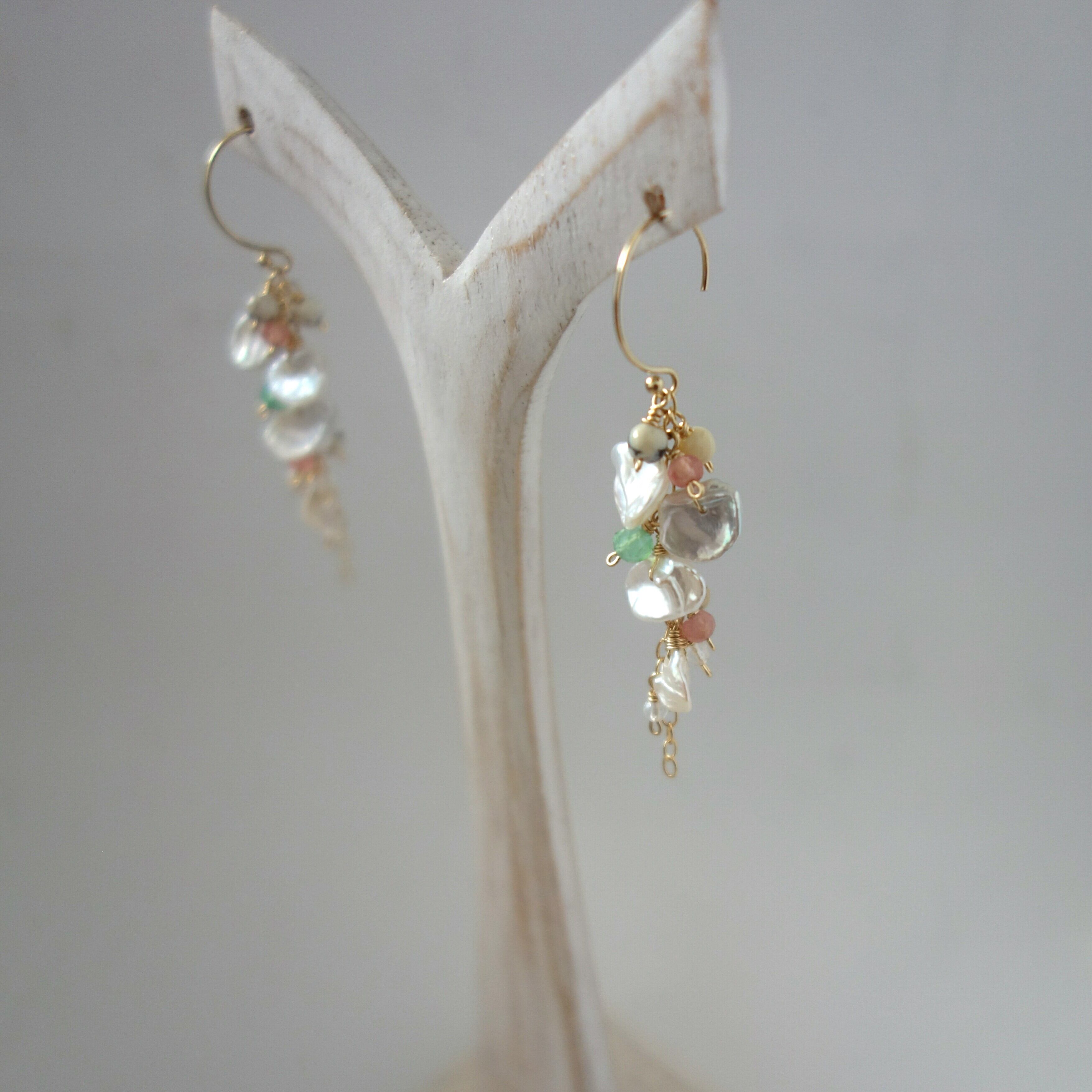ケシパールのゆらゆら春色ピアス【14kgf/天然石】