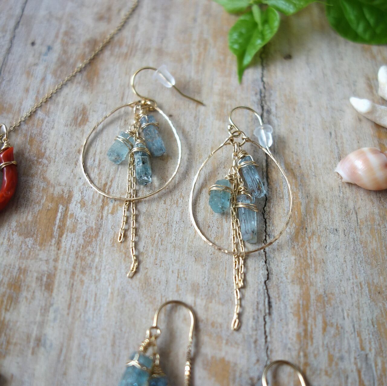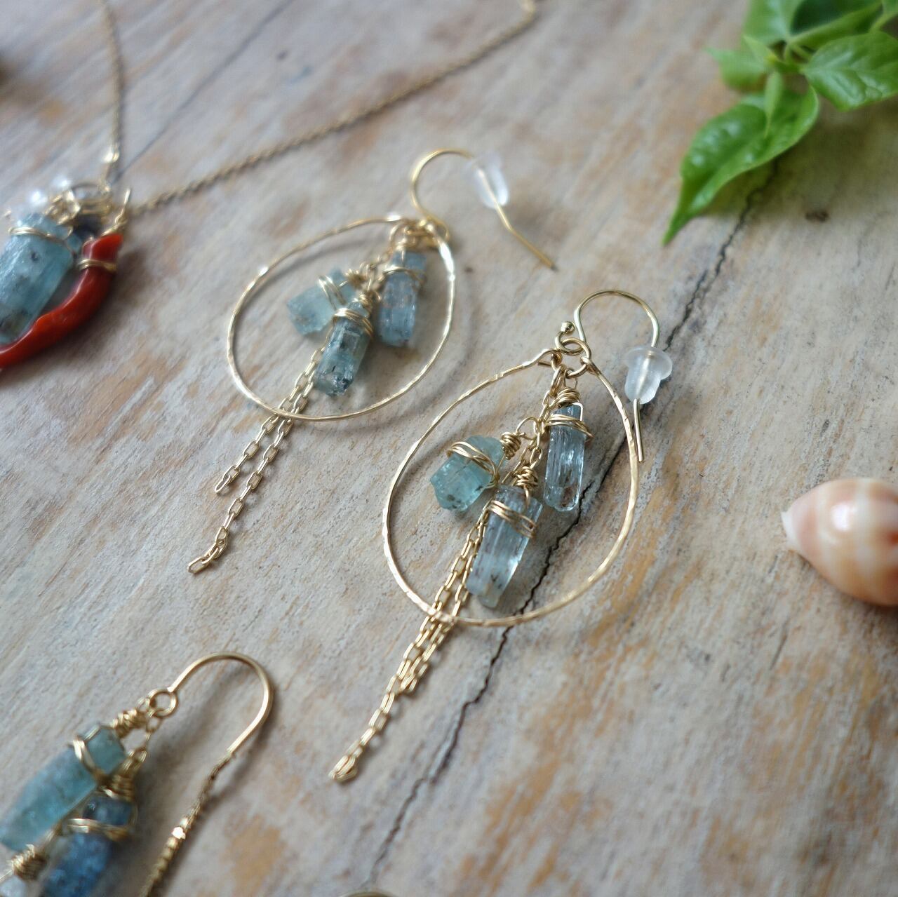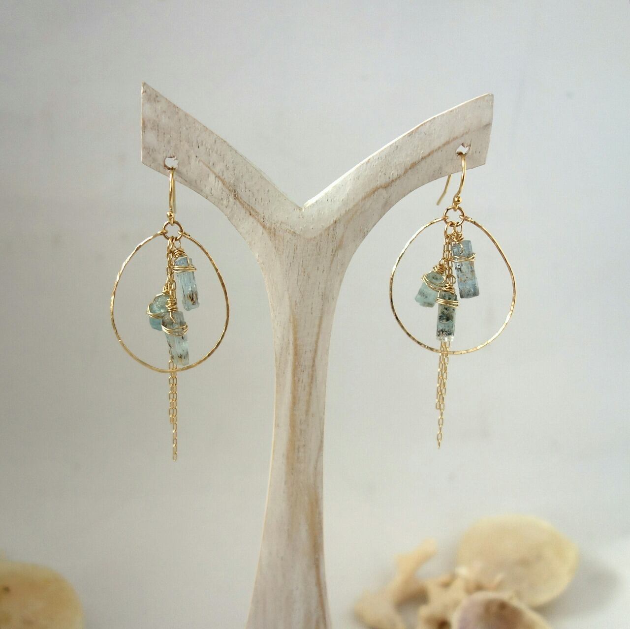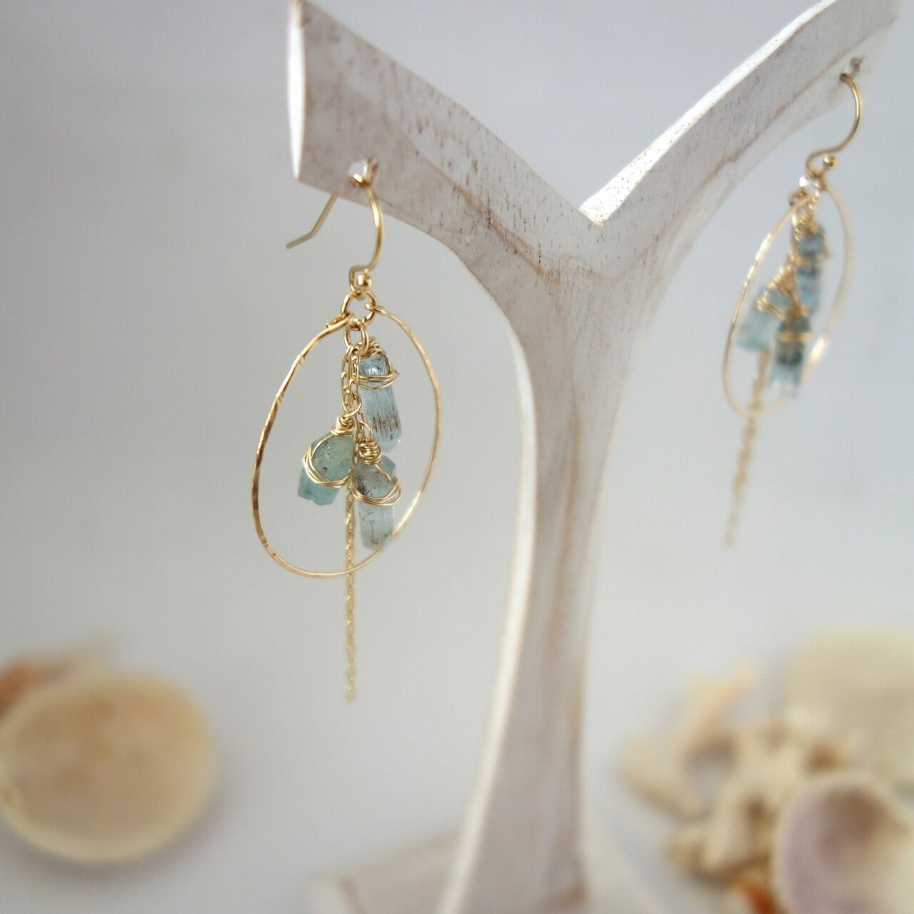 原石アクアマリンのゆらゆらフープピアス【14kgf/天然石】