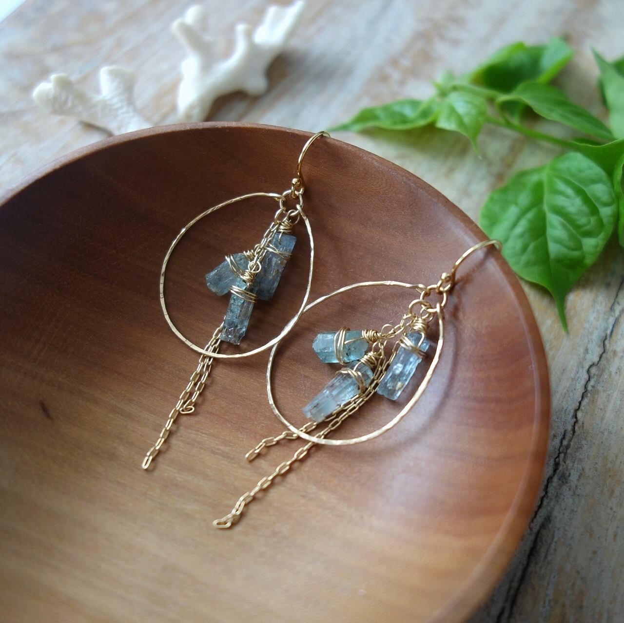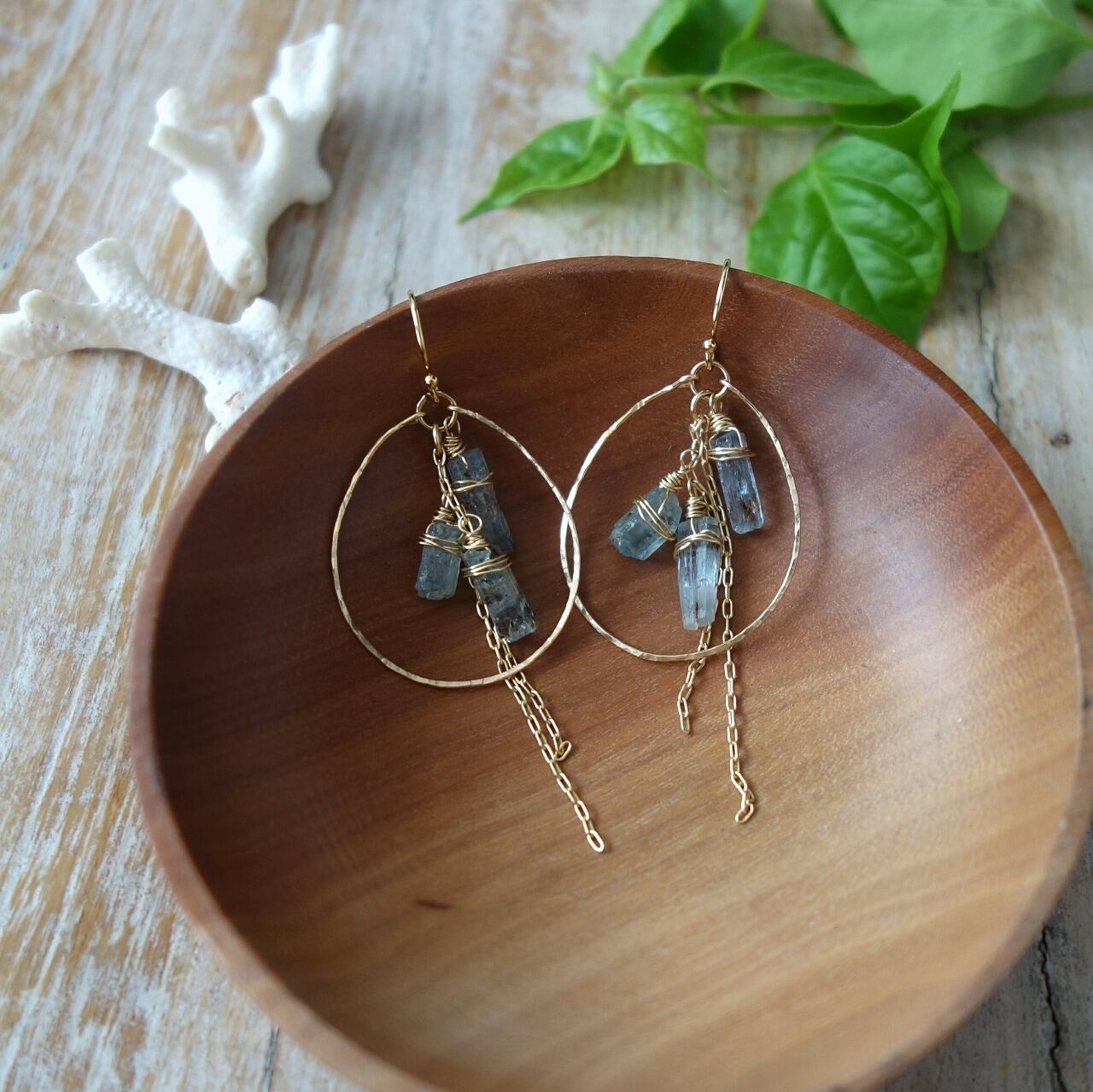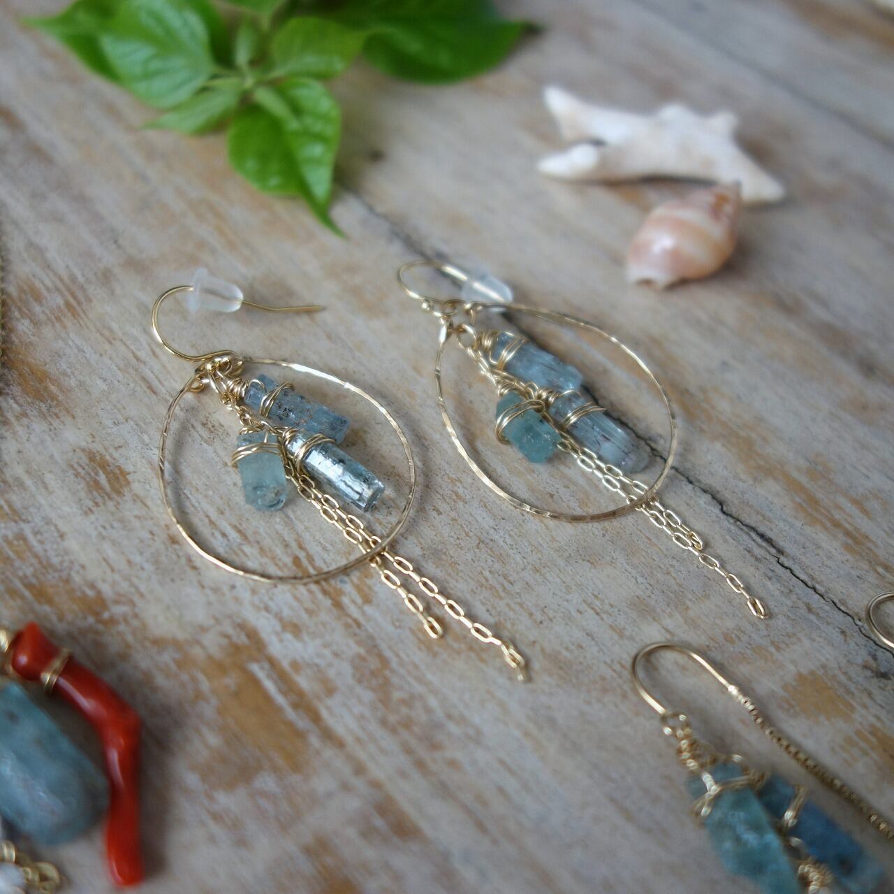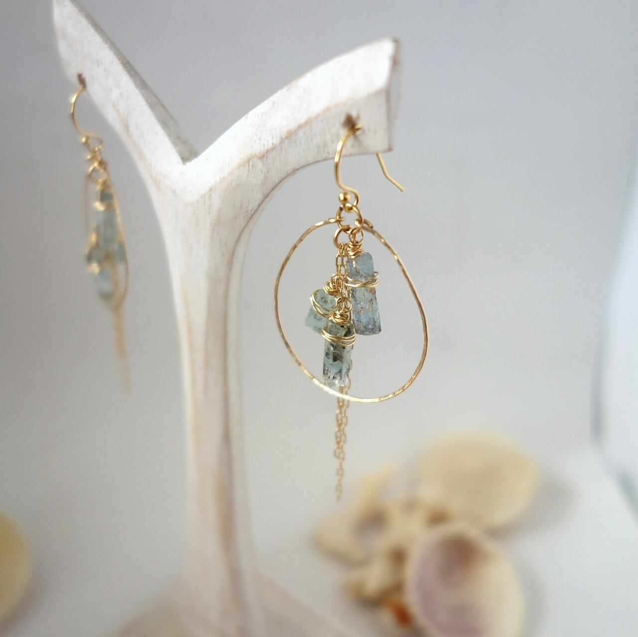 原石アクアマリンのゆらゆらフープピアス【14kgf/天然石】
