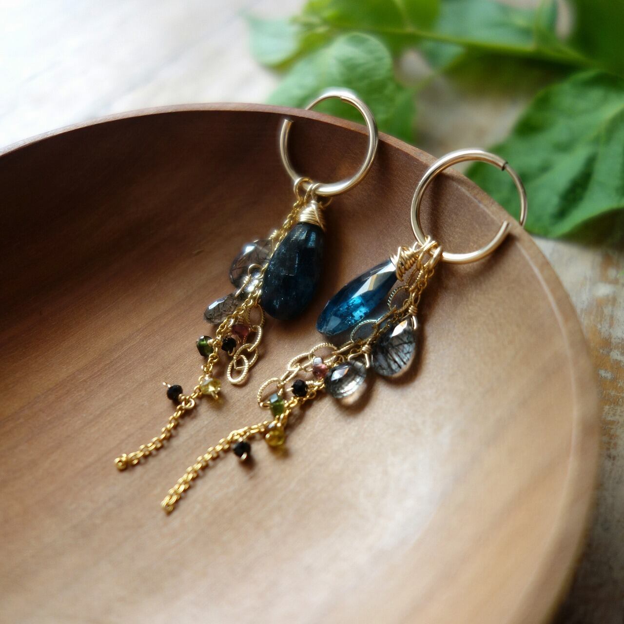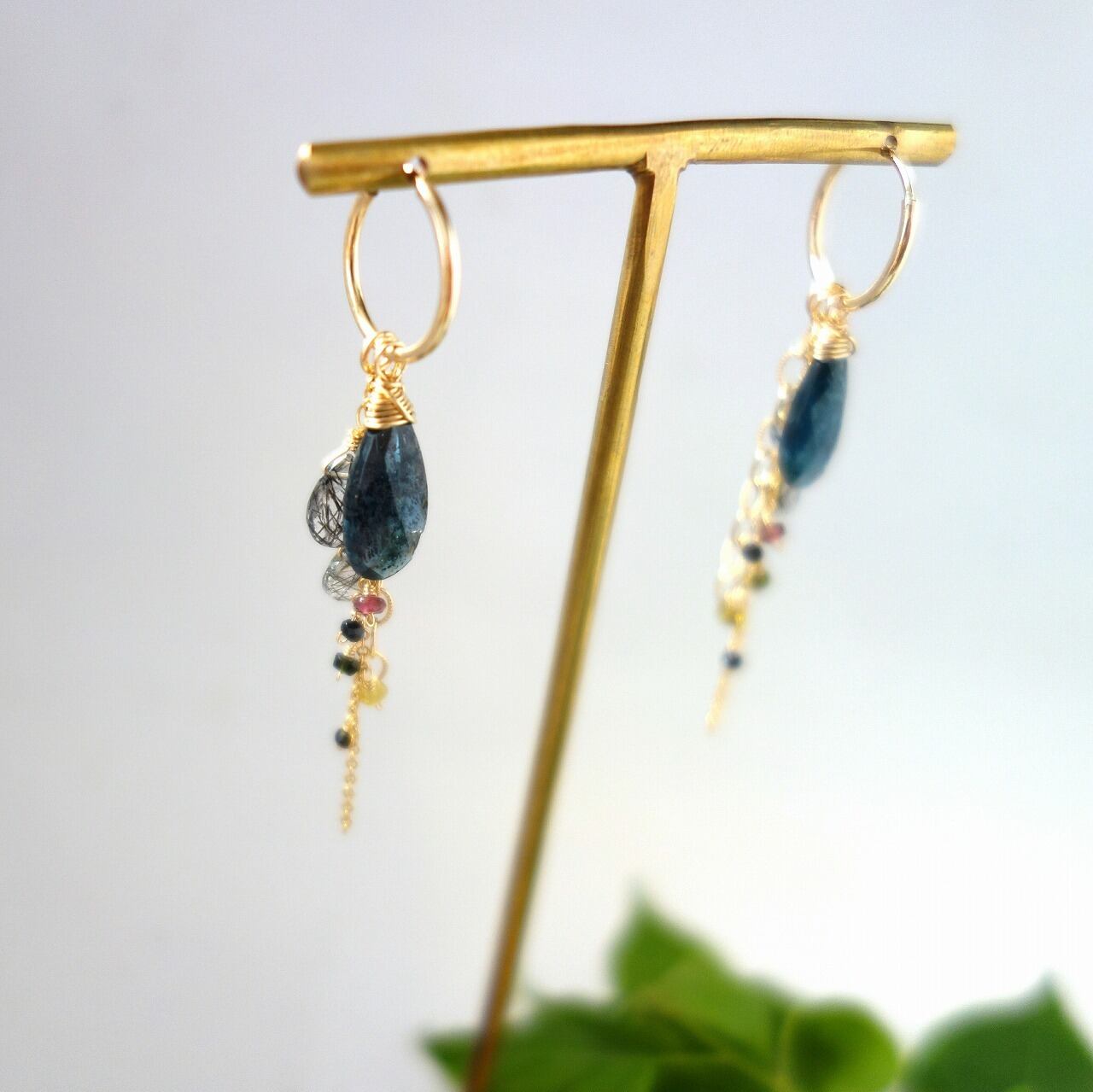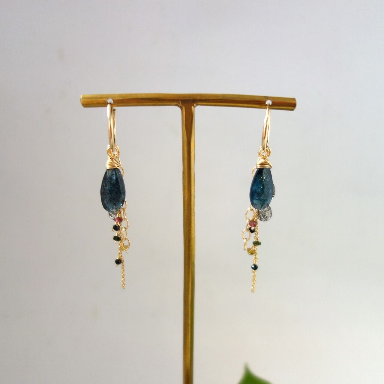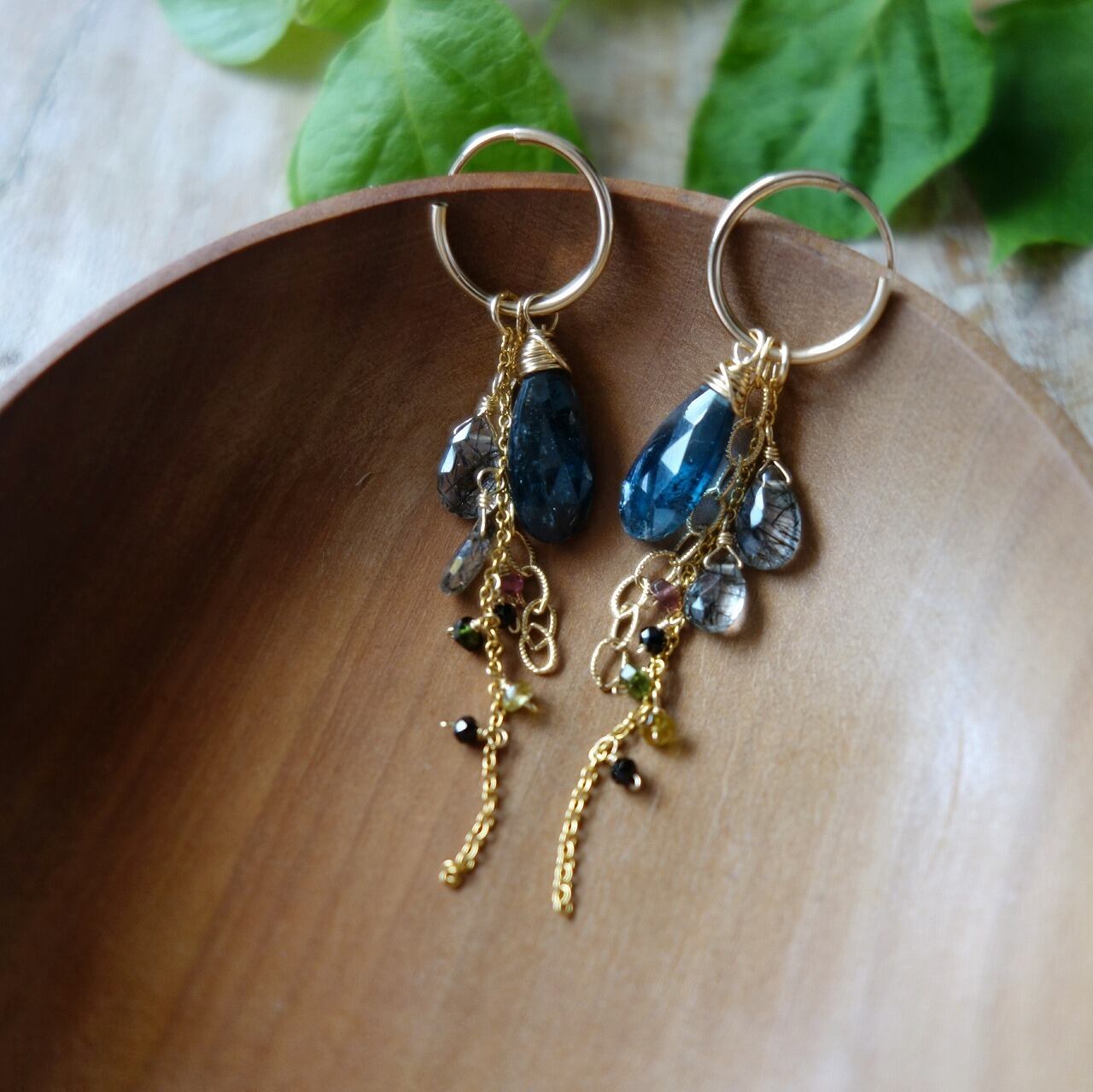 モスカイヤナイトとトルマリンのフープピアス【14kgf/天然石】