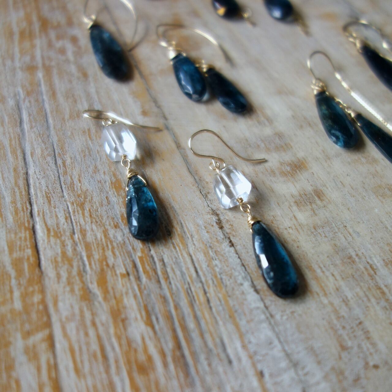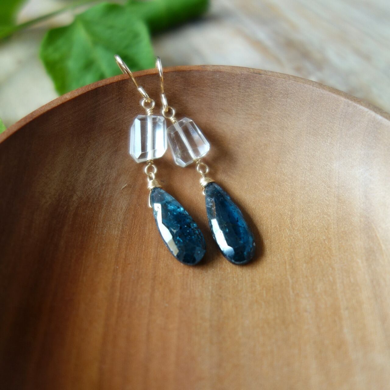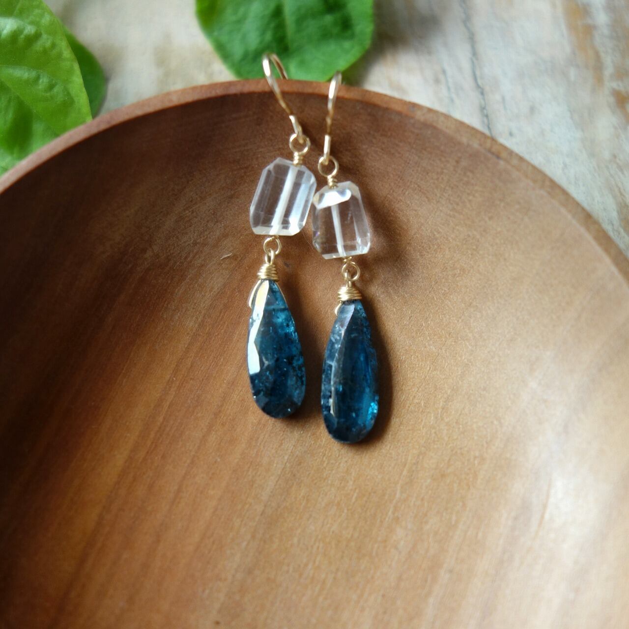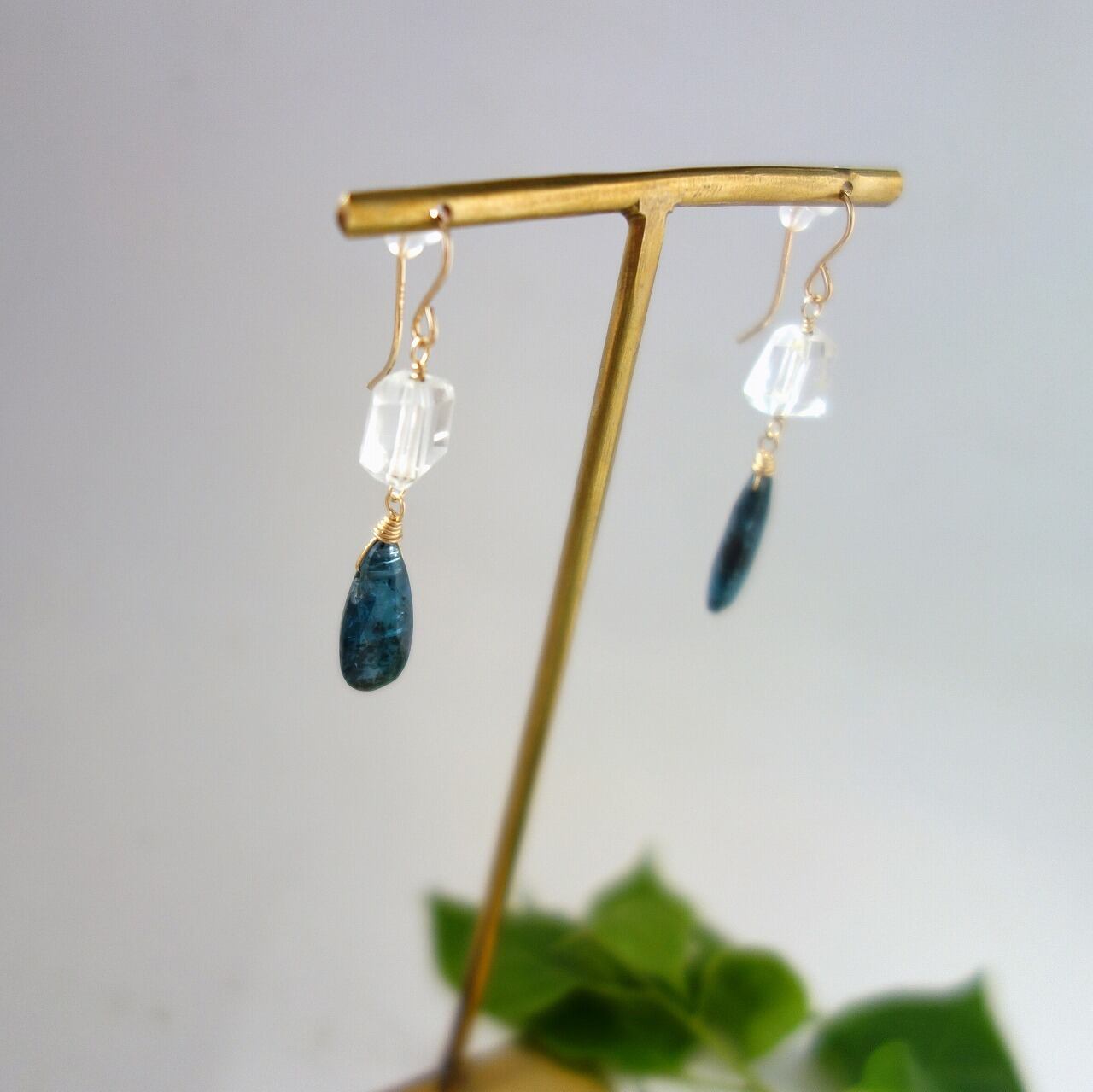モスカイヤナイトとクリスタルクォーツのフックピアス【14kgf/天然石】